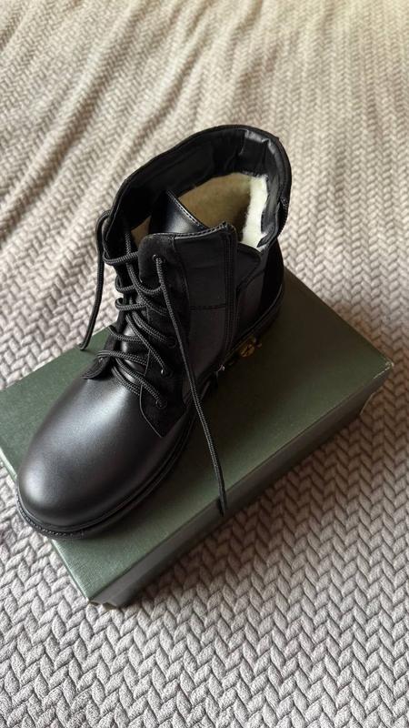 Шкіряні черевики з замшою та натуральним хутром всередині