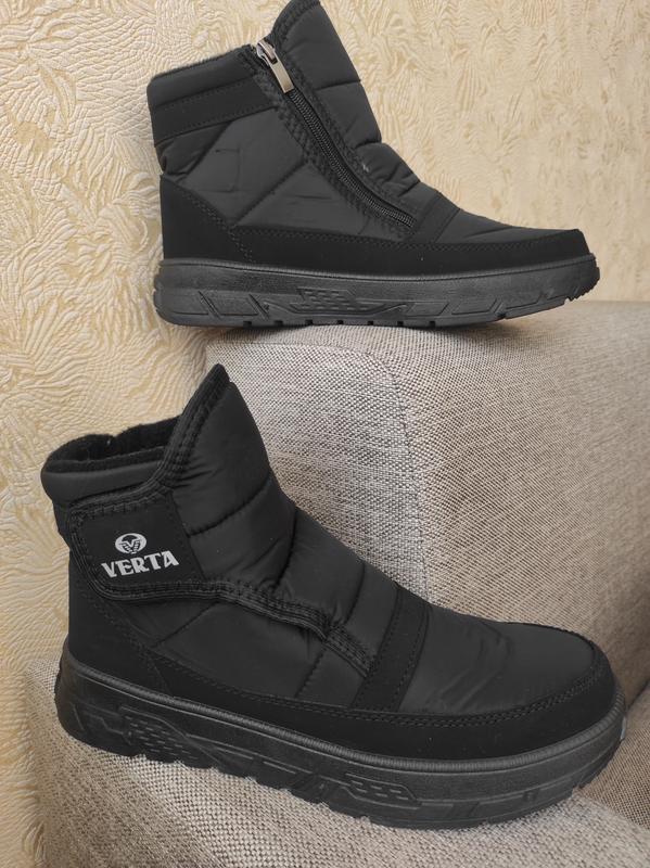 Чоловічі зимові короткі дутики ботінки з однієї сторони замок ,інша фіксується ліпучкою ,гарно сідають на ногу мягенькі ,верх водовідштовхуючий,середина штучний утеплювач,підошва пвх рельєфна .Повномірні 41-27 42-27.5 43-28 44-29 45-30