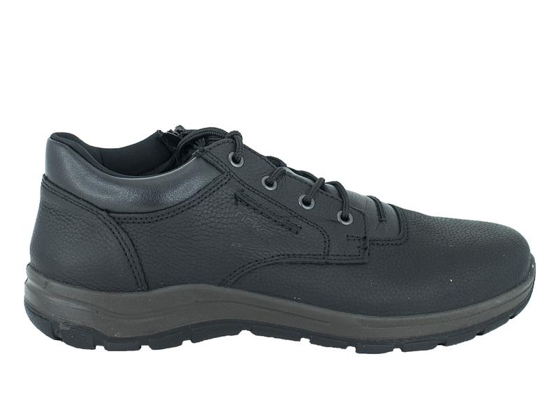 Практичные мужские зимние ботинки немецкого производства, выполнены из натуральной структурированной кожи в чёрном цвете, утепленены овчиной. С внутренней стороны есть змейка. Внутри стелька антистресс, идут на широкую стопу. Германия, натуральная кожа, чёрный, зима, овчина