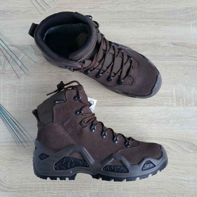 Тактичні черевики Lowa Z-6S GTX C, оригінал, верх замша та текстиль (балістичне полотно), середина термопідкладка. Ціна – 6700 грн. ✅US 11, UK 10, 44½р. - замір устілки 29 см (орієнтовно на таку ж стопу і йдуть 29 см). – Система Gore-Tex – захист від вологи та зберігання тепла ноги. – Устілка Climate Control забезпечує збереження сухості всередині взуття. – Проміжна підошва Lowa Monowrap – тривимірна конструкція між верхом і підошвою, яка забезпечує стабілізацію, бічний захист стопи, а також створює природну плантацію щиколотки від пальців до п’яти за допомогою технології Stability Frame. – Підошва Lowa Tactical Z Trac – забезпечує підтримку та зчеплення на будь-якій поверхні та за будь-яких погодніх умов. – Протектор Lowa Rubber Outsole –самоочищається, добре працює як на землі, так і на асфальті. – Шнурівка має систему закритих гачків, які надійно фіксують ногу. – Колір коричневий. – Нові, сток з Німеччини, йдуть без коробки.