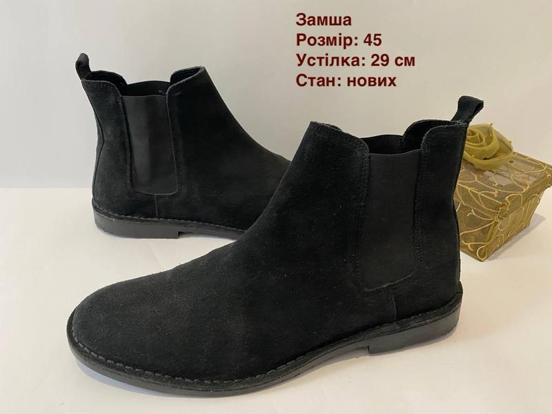Замшеві чоловічі черевики Челсі 45 р. Устілка 28,5-29 см. Колір мокрий асфальт. Стан нових.