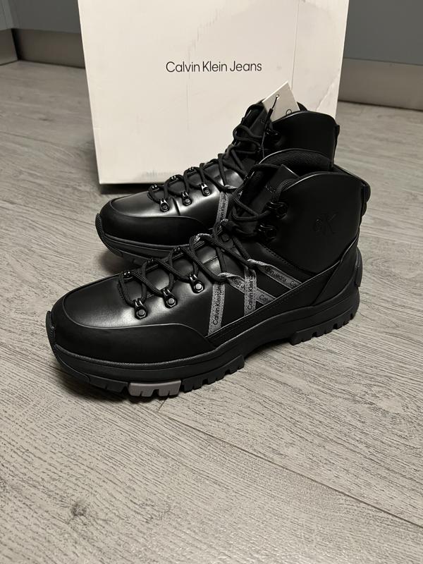 Нові чоловічі оригінальні шкіряні черевики Calvin Klein 43 розміру чорного кольору. Черевики з колекції Calvin Klein Jeans виготовлені з комбінації нубука та органічної шкіри. Модель має гумову зовнішню підошву, яка відрізняється міцністю та стійкістю до пошкоджень. Круглий, щільно прилягаючий передній носок. Тверда п'ята частина забезпечує відмінну підтримку щиколіття та п'яти. Класичні шнурки гарантують індивідуальне регулювання фіксації стопи. Текстильна внутрішня частина забезпечує комфорт для ноги та полегшує догляд за взуттям. Гумова підошва міцна та стійка до пошкоджень.