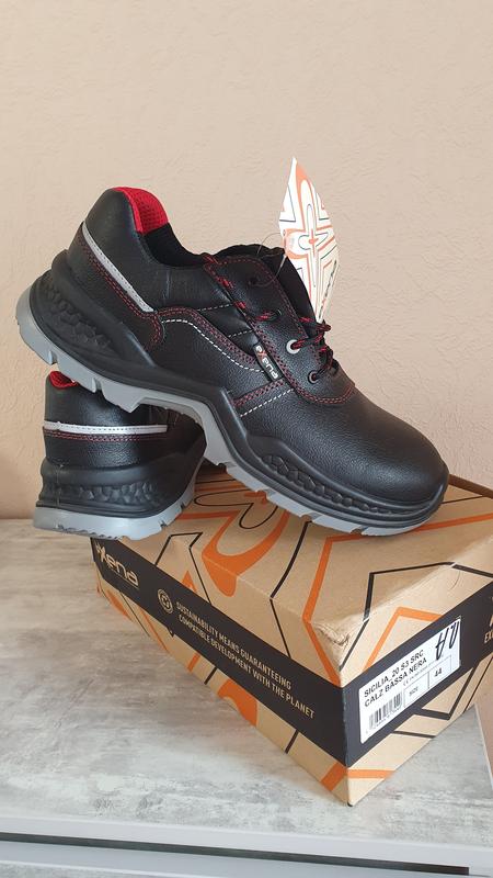 Новые специальные рабочие ботинки с усиленным носом (вставлена пластиной) и кевлаторой стопко от итальянского производителя Exena. Характеристики: Штробная стелька сменная 29см формованная, антибактериальная, влагопоглощающая, анатомически правильная, антипрокольная kevlar BIO FLEX. Защита от прокола 1100N. Материал верха лицевая кожа толщиной до 2.2 мм.; повышенное сопротивление на разрыв; водоотталкивающий и дышащий; легко очищается от общих загрязнений. Подкладочный материал исключительного уровня поглощения влаги и воздухопроницаемости. Подошва Первый слой - протектор PU обеспечивает повышенную прочность и сцепление с поверхностью; четкие границы профиля, со специфической геометрией рисунка и глубоким протектором обеспечивают отличное сцепление с любой поверхностью – SRC; верхний слой - прямого прилива. За счет впрыскивания под высоким давлением полиуретана происходит его глубокое проникновение в материал верха - кожу. Происходит отличное адгезия — межмолекулярное взаимодействие. Верхний слой надежно сжигается с протектором; протектор PU/PU обеспечивает надежное сцепление с поверхностью, одновременно прочно и мягко фиксирует ее на неровных поверхностях; антистатическая, устойчивая к воздействию масел, бензина, растворов кислот и щелочей. Защитный подносок композитный. Ударная нагрузка до 200Дж; широкая форма обеспечивает оптимальное пространство для пальцев. Задник жесткий из термопластичного материала; надежная фиксация стопы, предупреждения вывиха. Шнуровка удобная регулировка полноты. Сезон демисезонные или для закрытых помещений в течение всего года. Стандарт EN ISO 20345