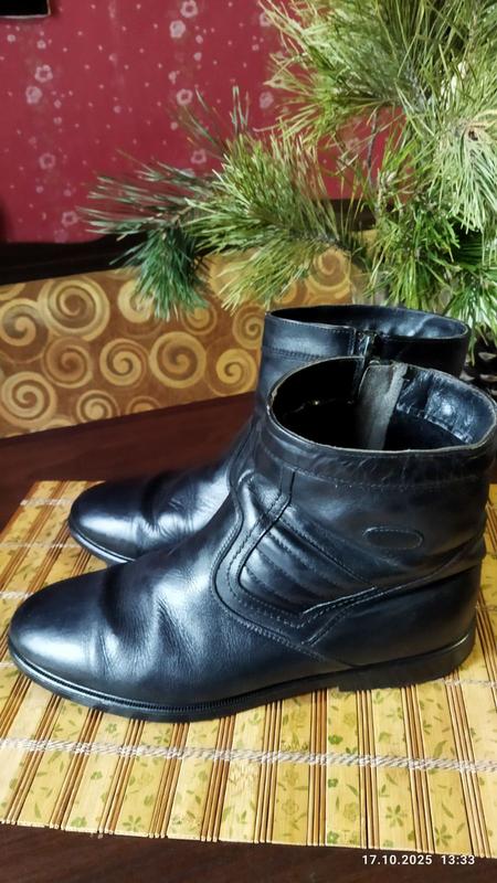 Верх — натуральна шкіра, всередині — штучне хутро. Устілка — 26,5 см. Висота халяви — 16 см. На підборах зроблена профілактика ( видно на останньому фото).