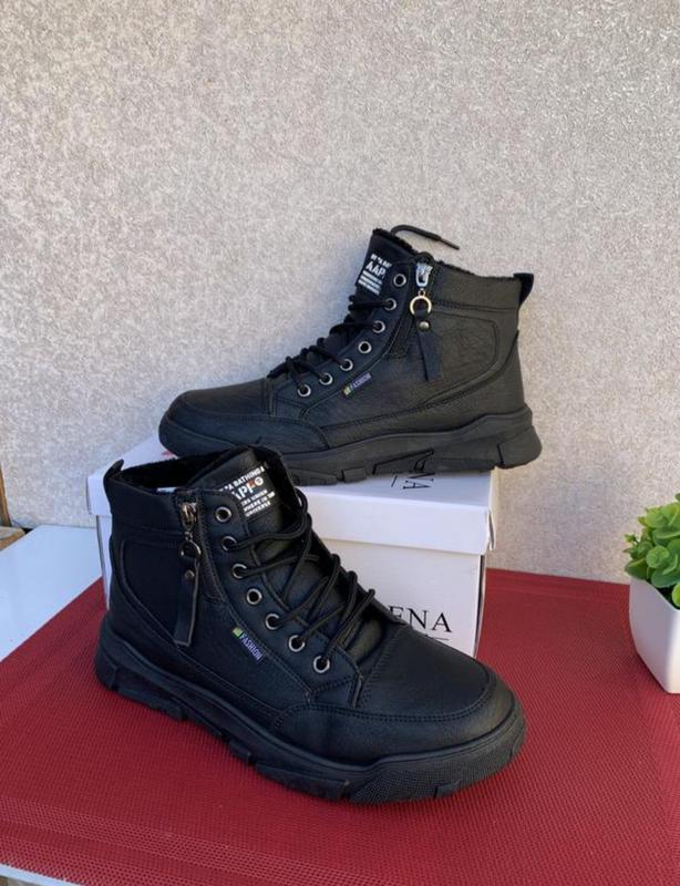 Черевики чоловічі зимові чорні. натуральна шкіра. надійна підошва,не слизька.