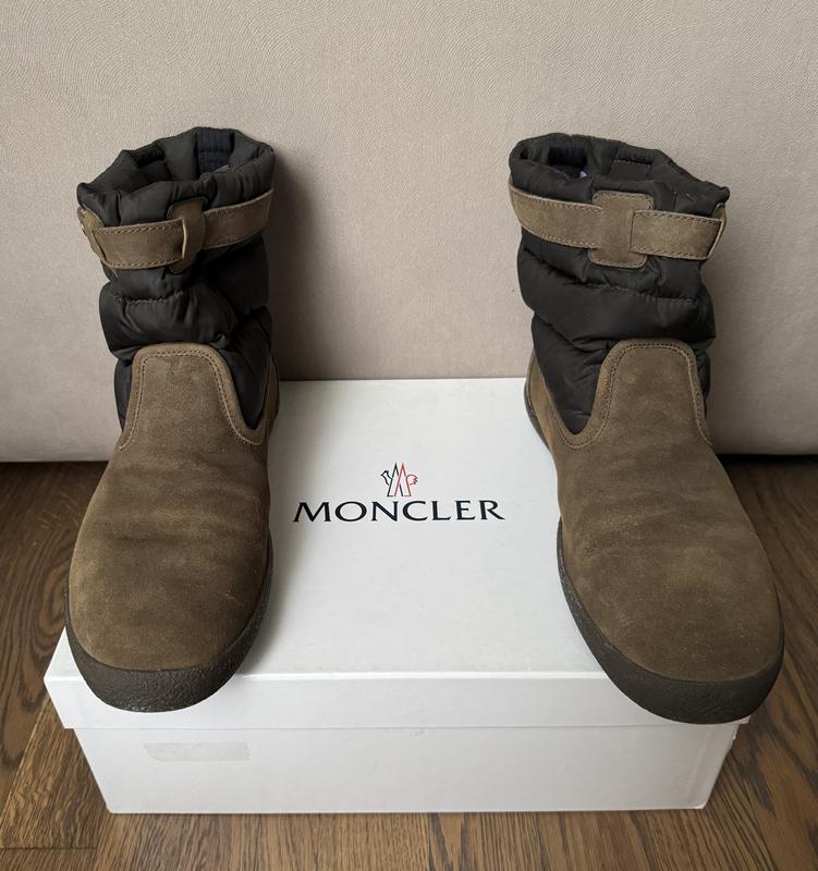Зимові дуті півчеревики Moncler (оригінал). У складі пух-пір'я 90/10. Теплі, легкі, дуже зручні. Шкіряна устілка, замшевий верх. На застібці. Зі старих колекцій, були в носінні не більше 5 разів. Ідеальний стан, всі нюанси видно на фото. Більше фото з різних ракурсів надішлю в особисті повідомлення за запитом. Розмір на бирці - 43. Устілка - 28,5 см. Made in Italy. Рідна коробка, мішок. Все в ідеальному стані. Translated with ********* (free version)