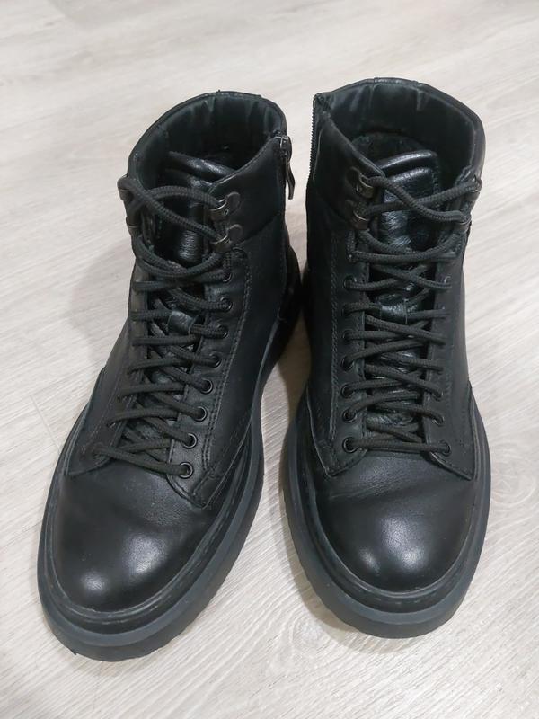 Шкіряні черевики утеплені. Мають фіксуючу шнурівку і для зручності боковий з середини замочок. На холодну осінь - зиму в самий раз. По устілці 26,5см. Взувались сезон,нога виросла. Стан прекрасний. Звертайтесь 😉