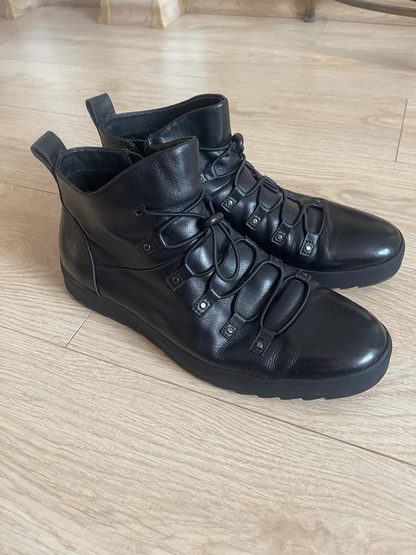 Чорні шкіряні черевики, розмір 42 Стильні, зручні та універсальні — ідеальні для весни й осені. Натуральна шкіра, м’яка текстильна підкладка, надійна підошва з ТЕП — не ковзає і витримує будь-яку погоду. Розмір: 42