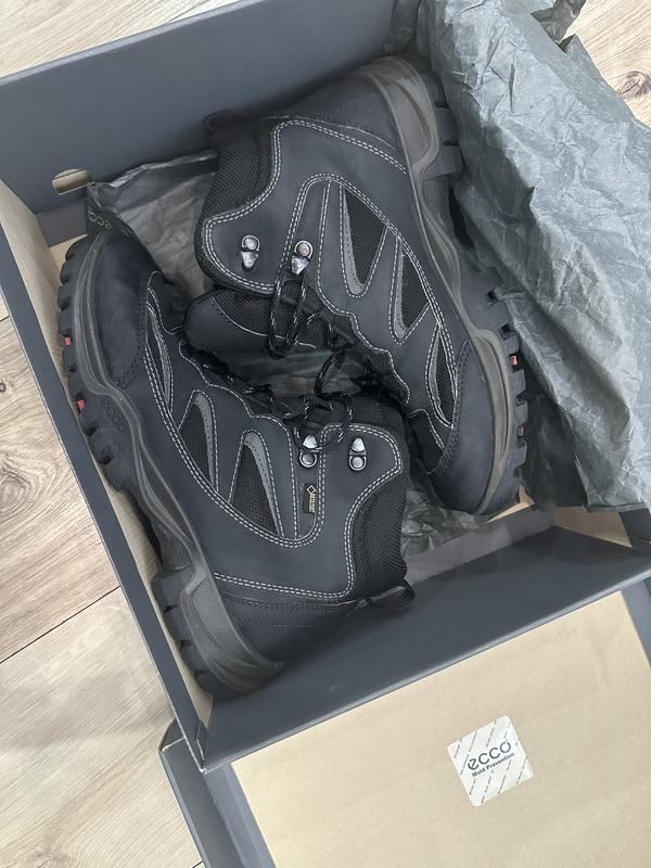 Черевики ecco Expedition III розмір вказаний 41, але краше орієнтуватися по замірам устілки 26,5см. Gore-tex, де і сезон, але ми купували як на зиму легкий варіант на зимовий відпочинок. Туристичні Відмінний вибір для активного відпочинку на природі. Чисті, стан ідеальний