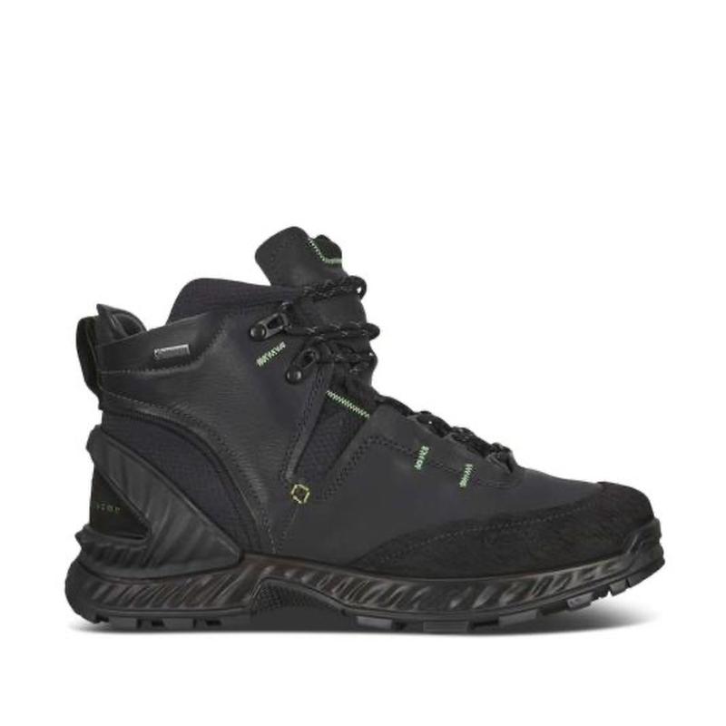 Матеріал верху: Виготовлені з міцної, але тонкої шкіри яка, обробленої за технологією ECCO DriTan™, що зменшує використання води та хімікатів у процесі дублення. Водонепроникність: Оснащені мембраною Gore-Tex, яка забезпечує повний водонепроникний захист, дозволяючи ногам дихати. Підошва: Легка проміжна підошва ECCO PHORENE™ забезпечує гнучкість, а інноваційна гумова підошва MICHELIN гарантує відмінне зчеплення на різних поверхнях. Комфорт: Анатомічна колодка PROSOMA підтримує та захищає стопи. Дизайн: Чорний колір з яскравими зеленими акцентами на шнурках та деталях. Розміри 40,41,42 ,43