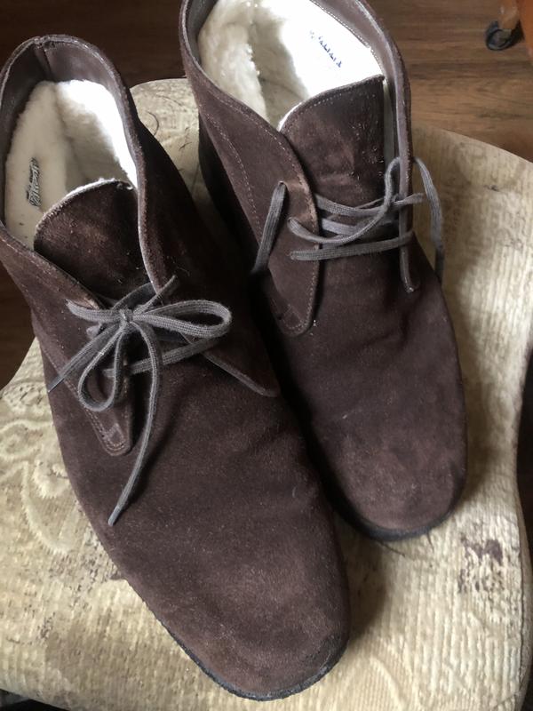 Зимові черевики, натуральний замш, на овчині, були у використанні, підошва схоже на каучук. Виробник Швейцарія, довжина устілки 28,5