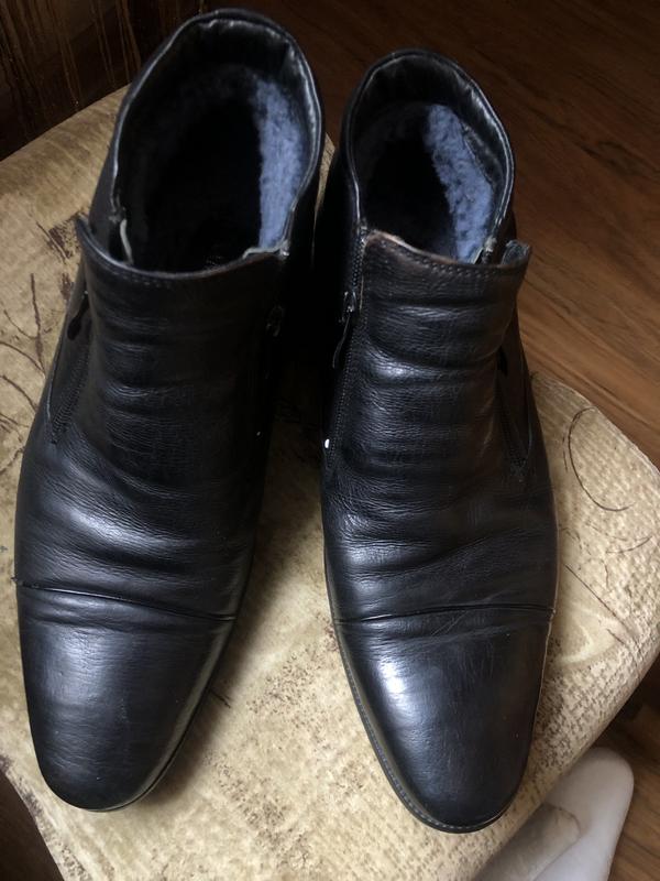Черевики з подовженими носками, на цегейці, 2 замка по бокам розстібаються, натуральна шкіра, розмір41