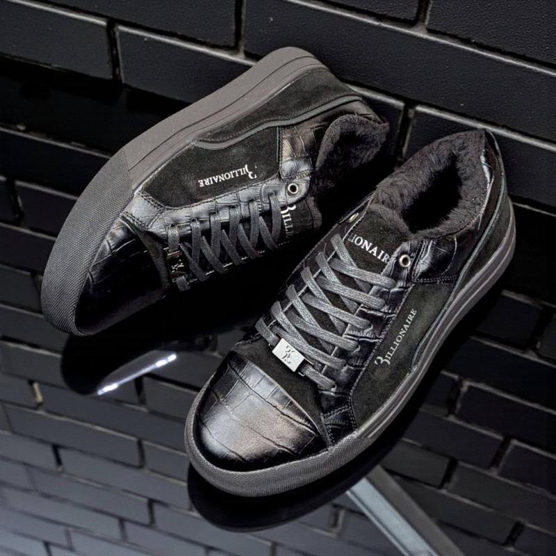 Низькі брендові черевик billionaire з натуральної шкіри , чоловіче зимове взуття на хутрі,...