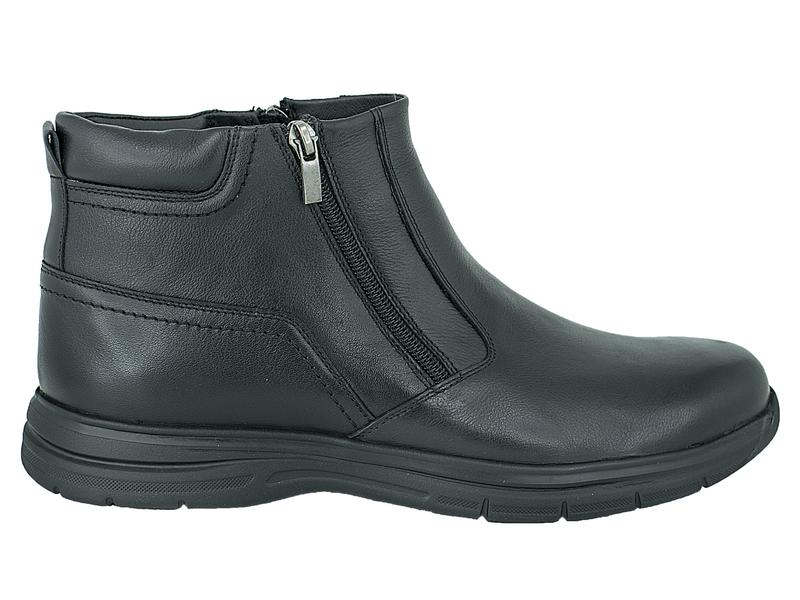 Практичные мужские зимние ботинки украинского производства. Выполнены из натуральной кожи в чёрном цвете. Внутри утеплены шерстью, подошва сделана из материалов EVA. С обеих сторон есть змейки. Украина, натуральная кожа, чёрный, зима, шерсть