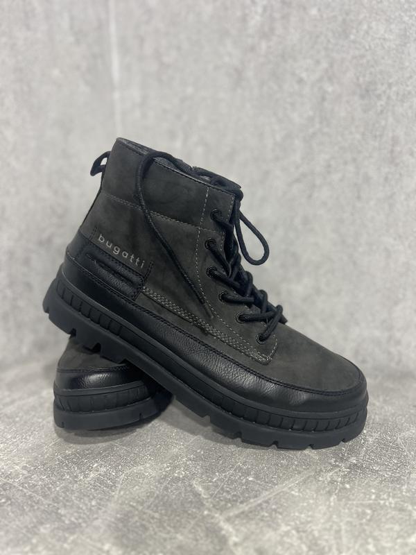 Чоловічі черевики Bugatti Основний колір: темно-сірий * Додатковий колір: чорний * Матеріал верху: синтетичний * Тип підкладки: Тепла * Підкладка: Хутро * Склад підкладки: 80% акрил + 20% терилен * Підошва: Термопластична гума * 45 розмір