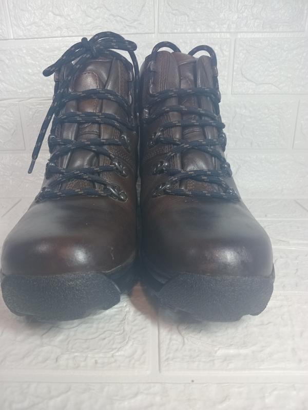 Трекінгові черевики Brasher, які, швидше за все, є популярною моделлю Hillmaster GTX або Supalite II GTX. Вони відомі своєю комфортністю, довговічністю та класичним зовнішнім виглядом. Характеристики Бренд: Brasher, британська компанія, що спеціалізується на одязі та взутті для активного відпочинку. Зараз класичні моделі Brasher виробляються під брендом Berghaus. Матеріал: Виготовлені з високоякісної цільнозернової шкіри (full-grain leather). Водонепроникність: Оснащені мембраною GORE-TEX (видно на етикетці), яка забезпечує повну водонепроникність та повітропроникність. Підошва: Часто використовується підошва Vibram, яка пропонує відмінне зчеплення на різних поверхнях. Призначення: Призначені для піших прогулянок, легкого трекінгу та використання на м'якому ґрунті. Ці черевики цінуються за комфорт "прямо з коробки" та надійний захист від води протягом усього терміну служби. Стан ідеал. Розмір 42 2/3 Довжина устілки 27.5см