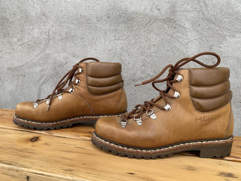 Черевики трекінгові Hock Стан: дуже добрий Розмір: 40 (25см) Пакування безкоштовне економить вам 20-40грн на послугах пошти Відправка в день замовлення Це чоловічі шкіряні трекінгові черевики німецького бренду Hock. Це міцне взуття класичного дизайну, виготовлене за методом Goodyear Welt (рантовий метод кріплення підошви), що забезпечує довговічність та можливість заміни підошви Матеріал: Верх виготовлений з товстої натуральної шкіри коричневого кольору. Особливості дизайну: Високий профіль з м'якою набивкою навколо щиколотки для додаткового комфорту та підтримки. Фурнітура: Надійна система шнурівки з металевими гачками та петлями. Призначення: Модель підходить як для трекінгу (походів пересіченою місцевістю), так і для повсякденного носіння в міських умовах