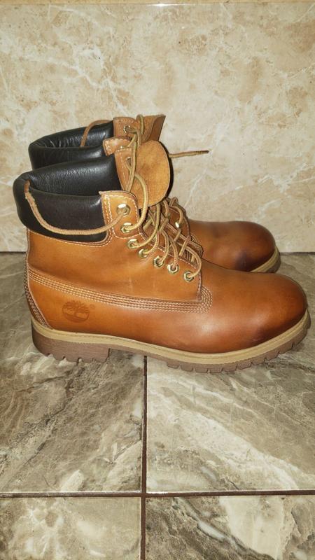 Черевики Timberland 43,5. Made in USA. Состояние отлично. Кожа очень толстая, гораздо толще, чем у китайских, доминиканских и вариантов из Бангадеша, Вьетнама. Эти ботинки изготовлены в США, и это ощущается, когда берешь их к рукам. Качество намного выше, чем у вышеперечисленных вариантов.