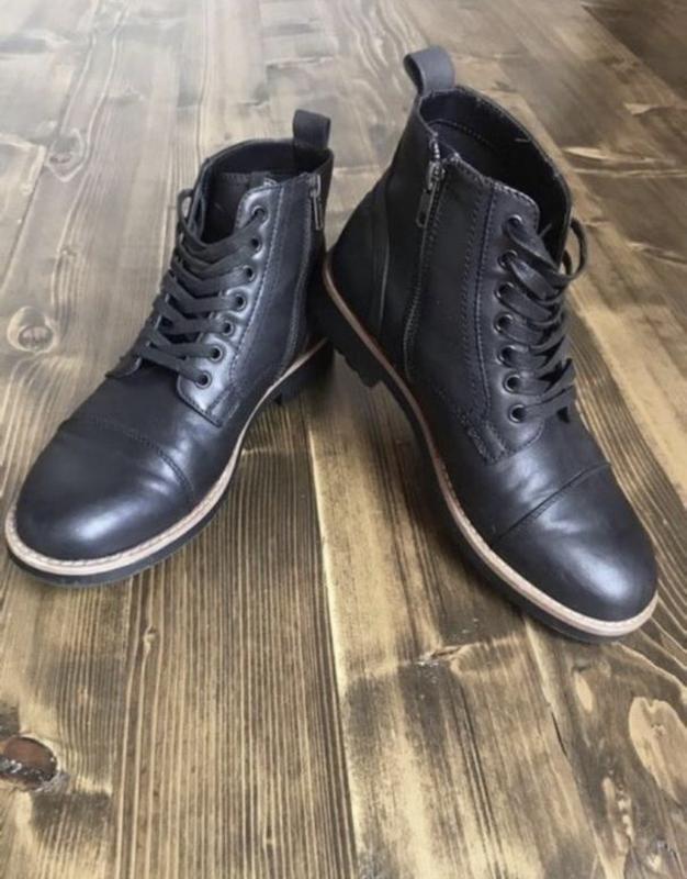 Модные мужские ботинки от Pull&Bear. Качественный кожзам, классно смотрятся на ноге. Обувались только по дому, так как оказались тесны мужу. Размер 40, 26см