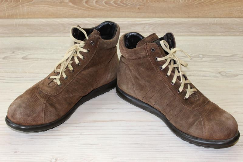 Ботинки испанского бренда Camper, модель Pelotas. Выполнены из натуральной замши. Внутри: натуральная кожа, тканевая подкладка. Замшевая стелька, в длину 30 см. Размер 46. Резиновая подошва с рельефом в форме оригинальных "шариков". Страна производитель Испания. Отличное состояние. износ минимальный. Смотрите все объявления автора. В наличии большой ассортимент оригинальной, брендовой обуви. По запросу дам ссылку на весь ассортимент.