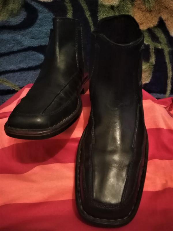 Шкіряні демісезонні черевики челсі, супер легкі, зручні, шкіра м'яка, тримають форму, носок і задник посилені, підошва прошита. Підошва виготовлена з термопластичної гуми з додаванням каучуку, дуже міцна, і, одночасно гнучка, пластична. Довжина устілки 30 см, каблук 3 см, висота чобіт від каблука ззаду 11 см, повнота хороша. Додаткові питання вітаються. Всім бажаю вдалих покупок. Арт. 0023