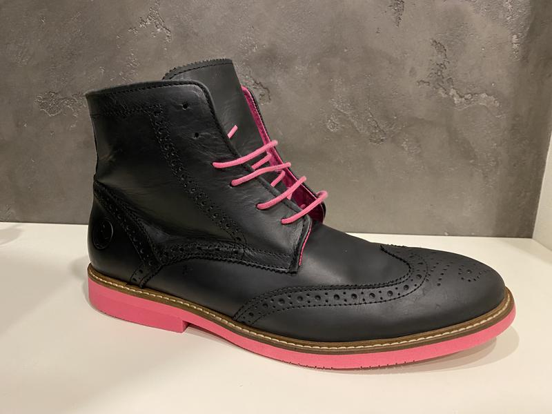 Дуже оригінальний зовнішній вигляд(високі броги на рожевій підошві)