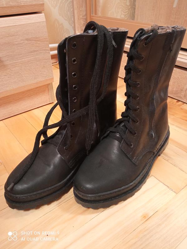 Нові шкіряні берци. З двох сторін на блискавці, попереду шнурівка. Зимові.