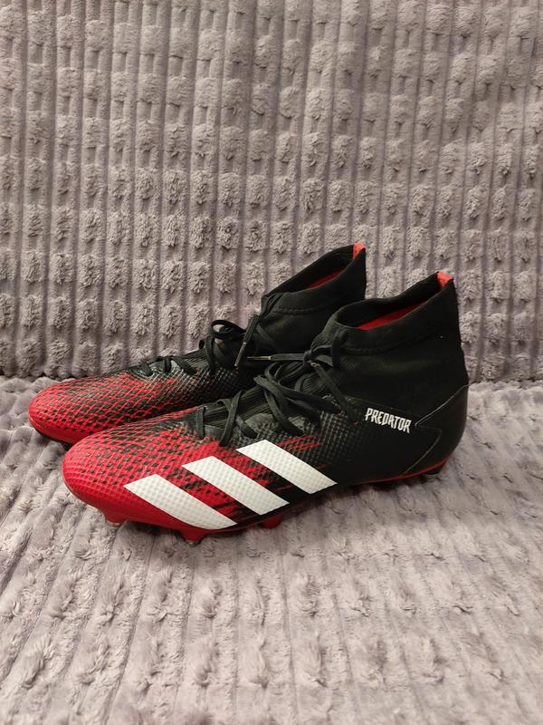 Футбольные бутсы Adidas Predator с носком размер EU 47 1/3 (подошва ~30–30.5 см). Цвет - черный с красными и белыми полосами. Модель с высоким неопреновым воротником для лучшей фиксации лодыжки. Состояние - хорошее, есть незначительные следы эксплуатации. Можно добавить еще фото по запросу. adidas predator, бутсы, футбольные бутсы, размер 47 1/3, EU 47.33, красные, высокая голенище, FG, твердое поле, спортивная обувь.