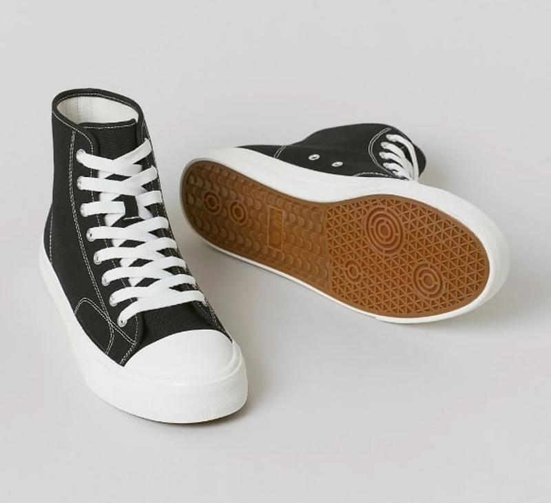 Высокие кеды из плотного хлопкового холста. Язычок и шнуровка спереди. Подкладка и стелька из хлопкового холста и резиновая подошва с рисунком снизу. Толщина подошвы 3,1 см. 43 размер. Новые, покупал год назад, но так и не носил. Цена новых на касте 2300...