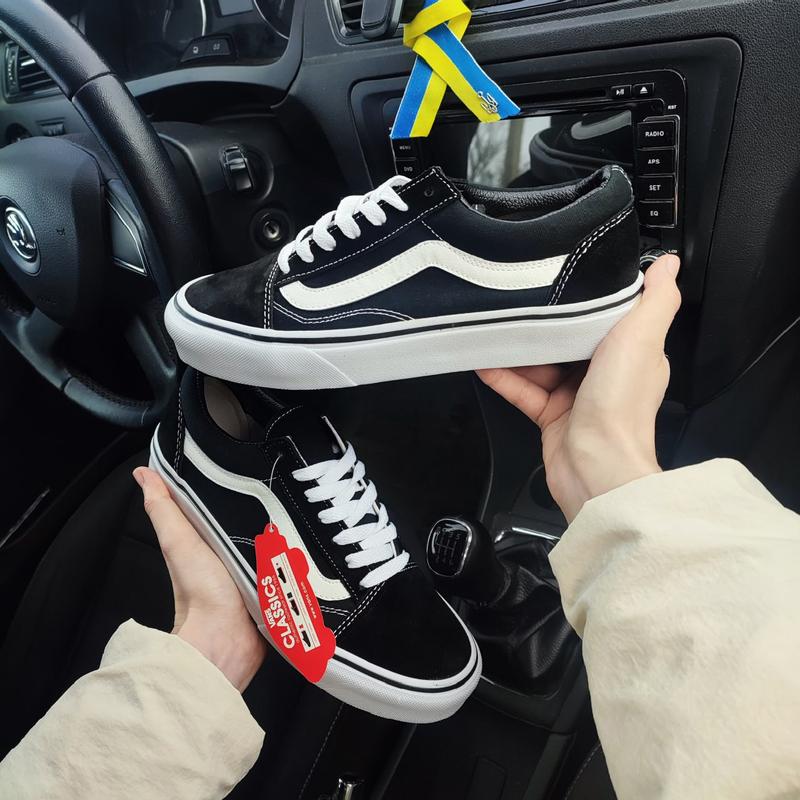 Арт 668 🔥Кеди Old Skool чорні з білим🔥 (чоловічі та жіночі) 👌ТОП якість Верх: текстиль/замша (вставки шкіри) Підошва: гума Сезон: весна/літо/осінь Розміри: 36(23см), 37(23,5см), 38(24,5см), 40(25,5см), 41(26-26,5см); 42(27см); 42,5(27,5см); 43(28см); 44(28,5см); 44,5(29см) йдуть у фірмовій коробці!‼️