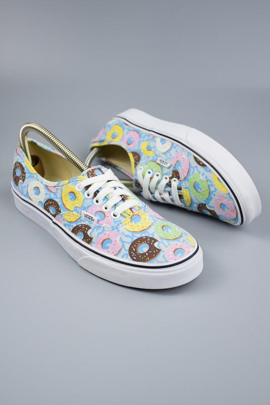 Vans Authentic Late Night Skyway/Donuts - це варіант культових кедів Vans Authentic з колекції "Late Night". Вони відрізняються особливим дизайном, на якому зображені смачні пончики ("donuts") на світло-синьому фоні. Ця модель є частиною тематичної колекції, яка надає класичному стилю Vans яскравий та цікавий акцент. Бренд: Vans Колір: Принт Розмір: 42 См по устілці: 27 Матеріал: Текстиль Стан: Ідеальний
