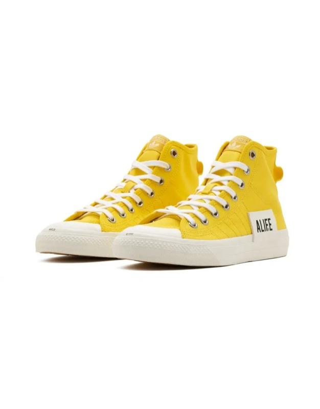 Яскраві ретро-кросівки adidas Originals by ALIFE NIZZA В моделі, створеної в 2020 році спільними зусиллями з компанією Alife, з'явилася ще м'якша амортизуюча підошва з вулканізованої гуми та прогумовані носки в порівнянні з попередньою моделлю. В результаті кеди стали універсальним повсякденним взуттям на літо. На бічній частині жовтого текстильного верху зображена гумова накладка з написом Alife. розмір 40 оригінал/ В'єтнам