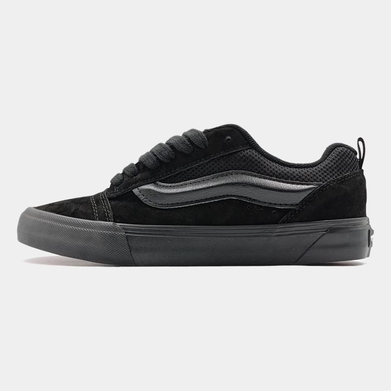 Vans KNU Skool Black - класичні та стильні кеди, які підходять для будь-якого образу. Їхні чорні кольори і простий дизайн роблять їх універсальними для різних ситуацій. Зручна підошва та міцний матеріал забезпечують довговічність і комфорт протягом усього дня.