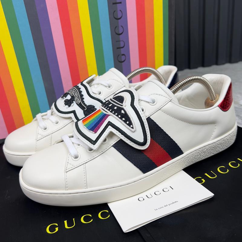 ТІЛЬКИ ОРИГНАЛ! В наявності більше 600 пар брендового взуття, сумок та аксесуарів. Автентичні кросівки Gucci Ace Web Sneaker UFO Dragon Patch White Leather Python Модель номер 478191 Sku: 2528 Розмір 7.5 Gucci. Приблизно 8.5 US або 41.5 EUR відповідно до офіційної таблиці розмірів. Зв'яжіться з нами, якщо ви не впевнені щодо розміру! В ідеальному стані. Уважно дивіться всі фото! В комплекті усе, що на першому фото Наша команда залюбки надасть всю необхідну інформацію. Робочі години Пн.-Пт. з 9.00 по 18.00 Сб.-Нд. вихідні