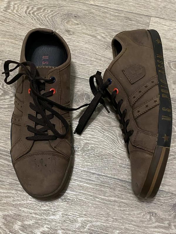 Зручні якісні брендові кросівки-кеди фірми US Polo ASSN. (оригінал) країна виробник — В'єтнам; виготовлені з натуральної шкіри/нубук, всередині — текстиль, устілка з натуральної шкіри Колір коричневий Вказівний розмір EUR-43 підійде на розмір де те 43/43,5 але краще дивитися за замірами: довжина по устілці — 28,5 см (підійде на стопу 28-28,5 см) ширина устілки в «косточці» — 9,2 см товщина підошви — 2 см висота закаблуком — 6 см стан дуже гарний, ступінь зносу — дивіться на докладних фото, з нюансів кант на правому заднику вгорі трохи надорваний/в ціні враховано Якщо є додаткові питання — звертайтеся Дивіться й інші свої оголошення є багато чого цікавого та різного Пересилаю НП Meest або УкрП під час оплати на карту ПБ, може й накладеною, але за попереднього плаття за доставку у дві сторони