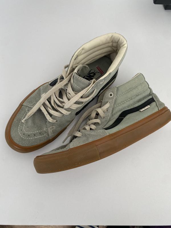 Це високі кеди Vans Sk8-Hi у кольорі Khaki & Gum. + Ця модель належить до лінійки Skate Classics, яка спеціально розроблена для скейтбордингу та має підвищену зносостійкість. Precision Skateshop Precision Skateshop Основні характеристики: Матеріали: Верх виконаний з поєднання міцної замші та канвасу. Підошва: Гумова підошва медового кольору (gum sole) з фірмовим вафельним протектором для кращого зчеплення. Технології: POPCUSH™: Устілка з поверненням енергії для чудової амортизації та захисту від ударів. DURACAP™: Посилені гумові вставки в зонах підвищеного зносу для тривалого використання. Дизайн: Високий силует із м'яким коміром навколо щиколотки для підтримки та комфорту
