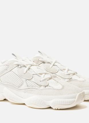 YEEZY 500 Bone White — нова модель кросівок, яка увійшла до складу лінійки, що розробляється за участю знаменитого музиканта Каньє Уеста. Верхня частина виконана з поєднання першокласної замші, шкіри, нейлонової сіточки і нубука. Зручна система шнурівки доповнено укріпленими вставками і рефлективными деталями навколо отворів. Гумова підошва оснащена амортизуючим матеріалом adiPRENE+, м'якою устілкою й чіпкої підметкою, що забезпечує високий рівень комфорту і хороше зчеплення з поверхнею. Нове слово в лінійці Ізі. STYLE: FV3573 COLORWAY: BONE WHITE/BONE WHITE/BONE WHITE RELEASE DATE: 08/24/201