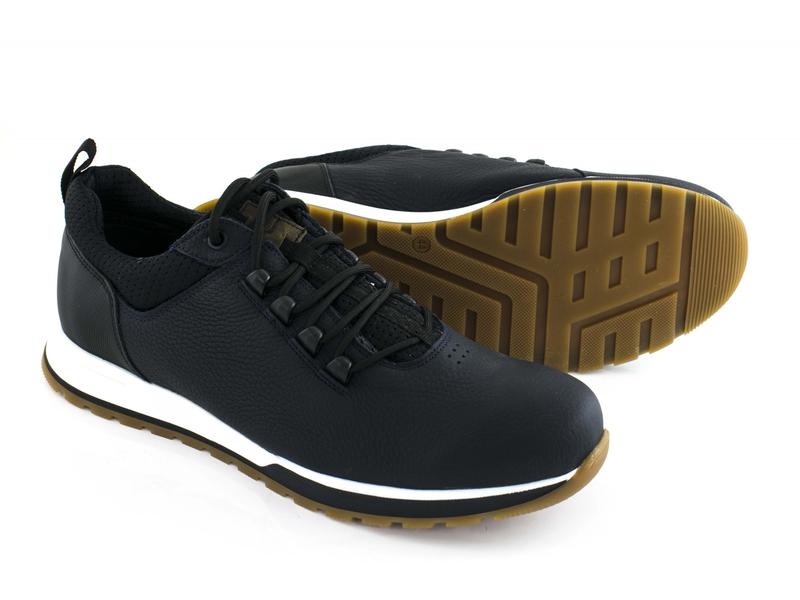 Удобные мужские кроссовки из натуральной кожи. Обувь запорожской обувной фабрикой Мида. Выполнена в синем цвете. стелька 26 см
