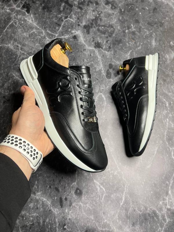 Стильные кроссовки белонер billionaire черные кожаные/кожа мужские деми, демисезонные осен...