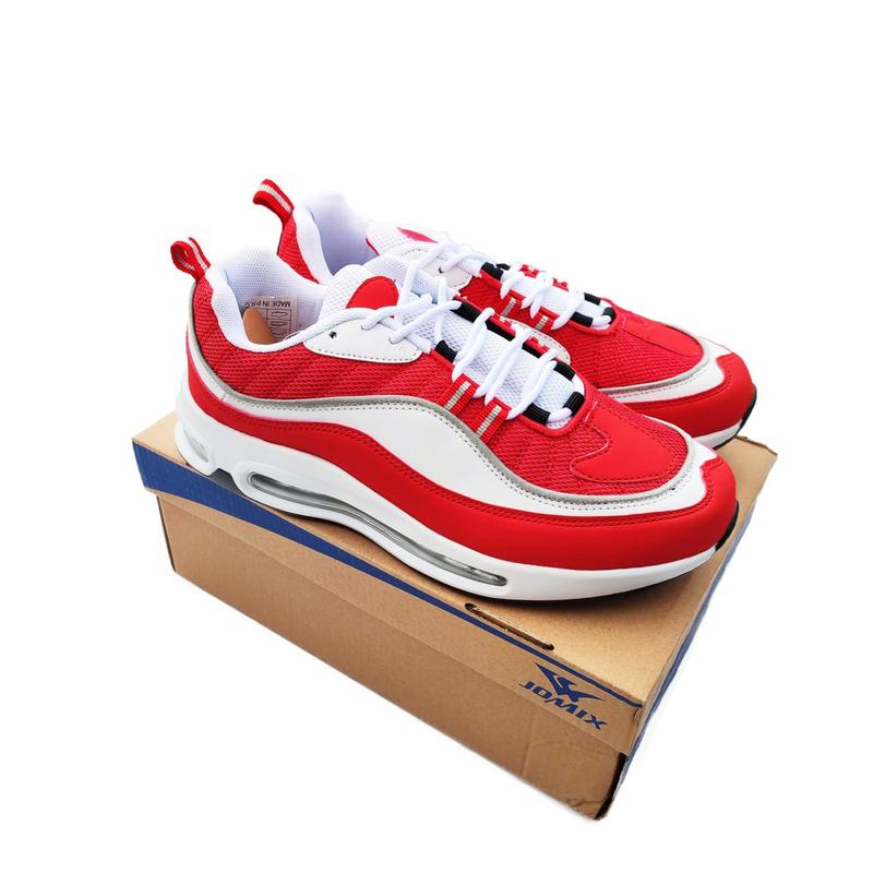 Новинка‼️ Арт 667 🔥Чоловічі кросівки білі з червоним🔥 Верх: прес шкіра/текстиль Підошва: піна/air Сезон: весна/осінь/літо Виробник: В'єтнам Розміри: 40(26см); 41(26,5см); 43(28см); 44(28,5см); 45(29см) +Фірмова коробка frid