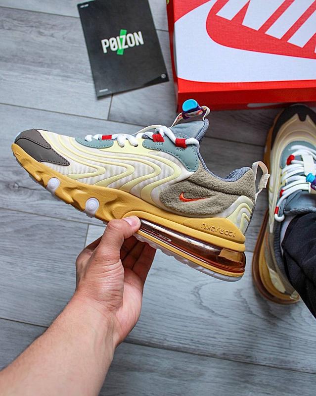 Nike Air Max 270 React 'Travis Scott' Розміри: 41-45 Виробник: Made in Vietnam Сезон: Весна - літо - осінь Матеріал: текстиль, силіконові вставки Підошва: Піна, балон для пом’якшення ходьби № 2028