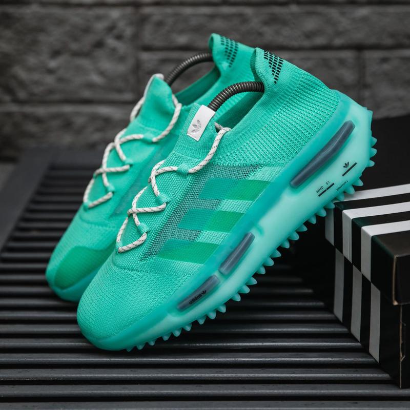 Бірюзові 💙🖤 круті кросівки adidas nmd s1 адидас угловаті полоси. на літо тканина сітка