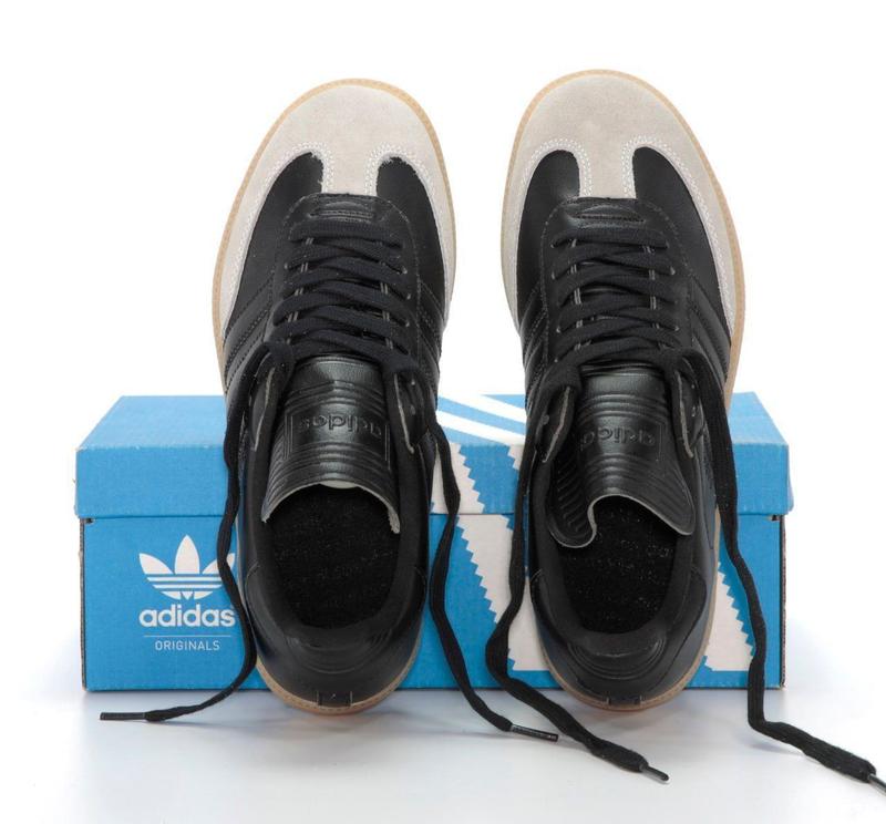 Кросівки Adidas Samba Humanrace АРТ: 14272 Розміри: 41-45 ↘️ Опис: Легкі весняно-літні кросівки на кожен день. Верх шкіряний, носок з замші, що захищає кросівки, так як замша більш витривала до подряпин, заломів і т.д. Шкіряний верх легкий в догляді. Підошва із міцної резини, яка сама по собі не дуже м'яка, але це компенсується устілкою. - Верх: шкіра, замша - Підошва: гума - Підкладка: шкіра, текстиль - Колір: чорний, сірий - Сезон: весна, літо - Виробник: В'єтнам - Комплект: Взуття, коробка