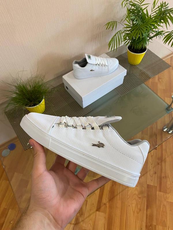 Новая позиция🎲😳😎 Код - D399 Lacoste White (белые) Материал верхней части – прорезиненная кожа Материал подошвы - резина. Производитель - не указан Размеры 40-44 40-25.5см, 41-26см, 42-26,5см, 43-27,5см, 44-28см
