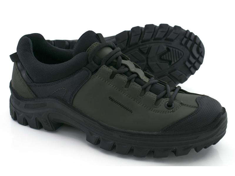 Классические мужские осенние кроссовки из плотной натуральной кожи. Обувь в зеленом цвете, с черными вставками. Украина, кожа, хаки, демисезон