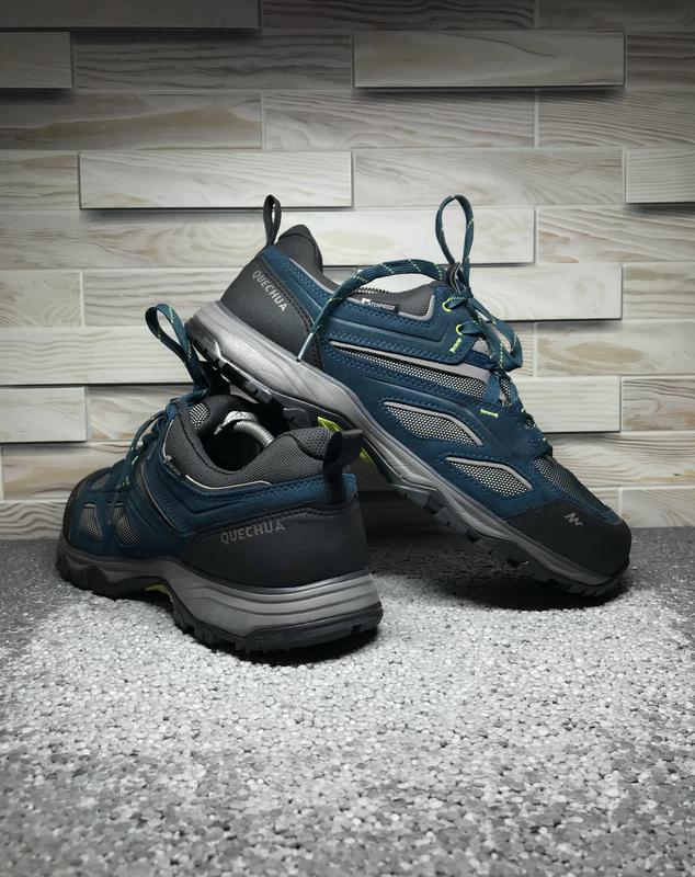Оригінальні напівчеревики Quechua. Модель виконана зі шкіри та текстилю. Гарний варіант на кожен день. Мембрана Waterproof (непромокаючі) забезпечує сухість і комфорт ногам, бездоганно підтримуючи потрібний мікроклімат. Підошва зносостійка, нековзна, забезпечує гарне зчеплення. Виконані з якісних. Стан чудовий (як на фото). Більше-міню з биркою на 0,5 см. На стопу 29 см.