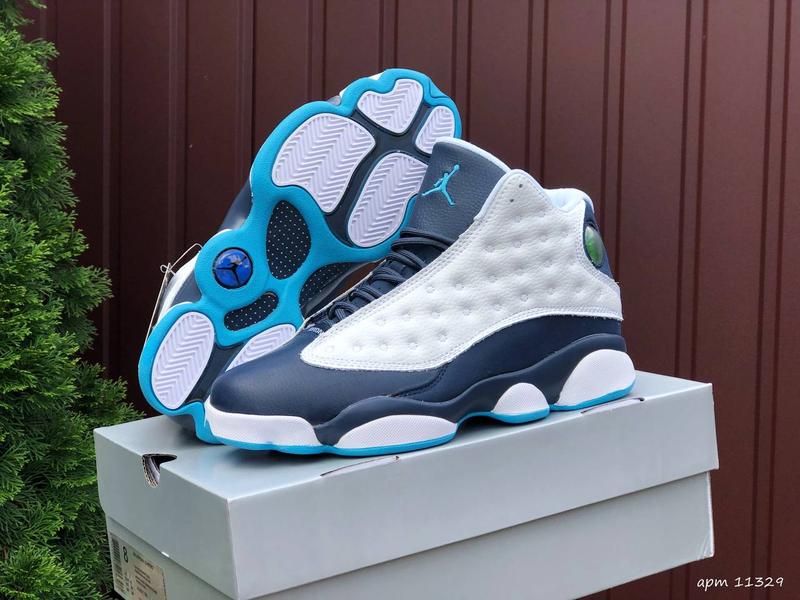 артикул 11329 сині з білим йдуть в коробці виробник: В’єтнам модель: Nike Air Jordan 13 Retro сезон: демісезонні розміри: 41 42 43 44 45 46 матеріал: прес шкіра, підошва пінка