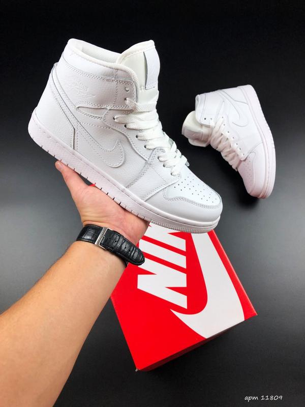 Nike air jordan 1 retro кросівки білі чоловічі високі найк джордан осінні шкіра шкіряні