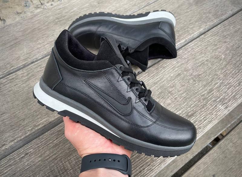 Чоловічі шкіряні зимові кросівки Nike Код: (N) ARM Сезон: зима Тип: черевики/кросовки Стать: чоловіча Колір чорний Верх: натуральна шкіра Середина: натуральна шерсть (набивна) Підошва: термополіуретан Стиль: повсякденний Розміри: 40,41,42,43,44,45. 40-(26 см) 41-(27 см) 42-(28 см) 43-(28,5 см) 44-(29 см) 45-(30см)