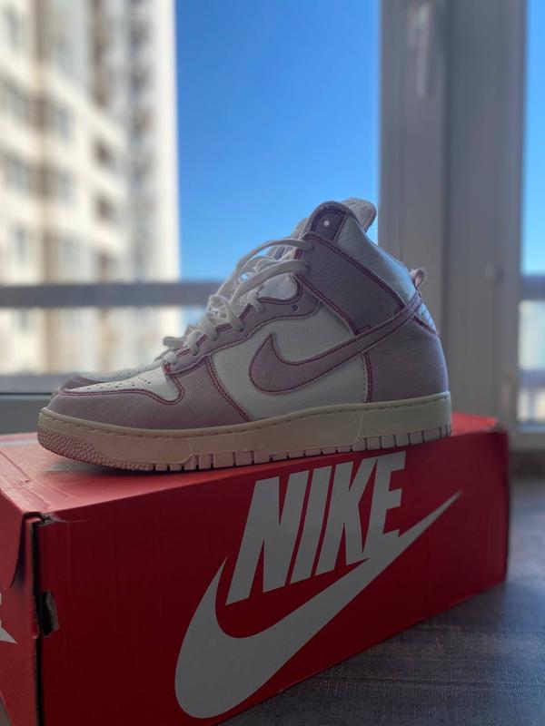 У продажу нові оригінальні кросівки Nike Dunk High у кольорі рожевий/білий. Надягали один раз під час примірки, не підійшов розмір. Йшли під замовлення з Європи.